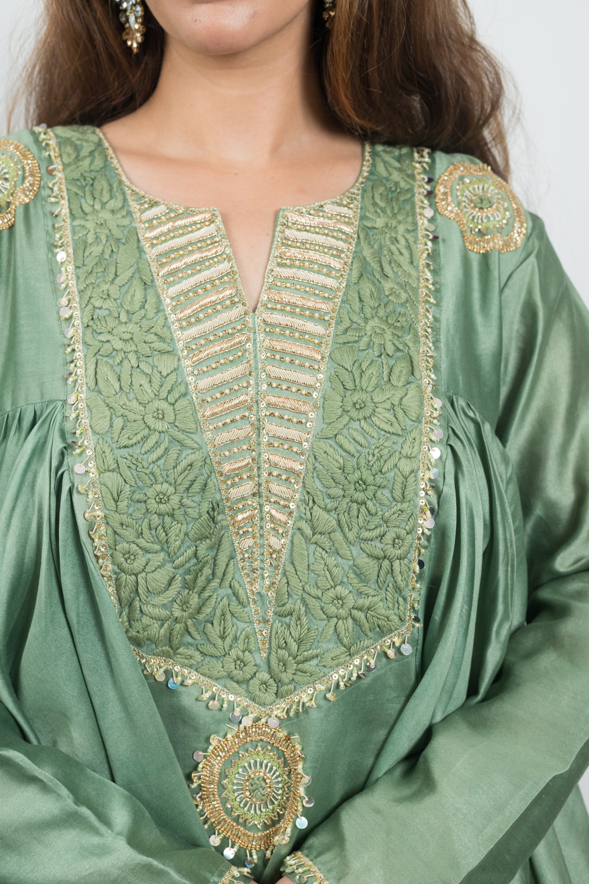 Intricate Zardosi, Pearl, Sequin, Katdana & thread handwork on the top