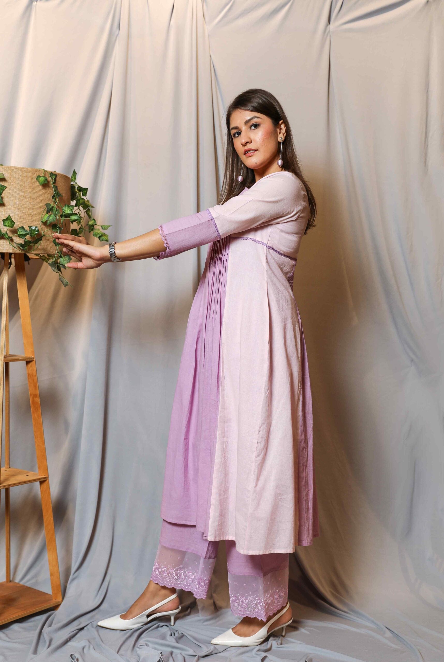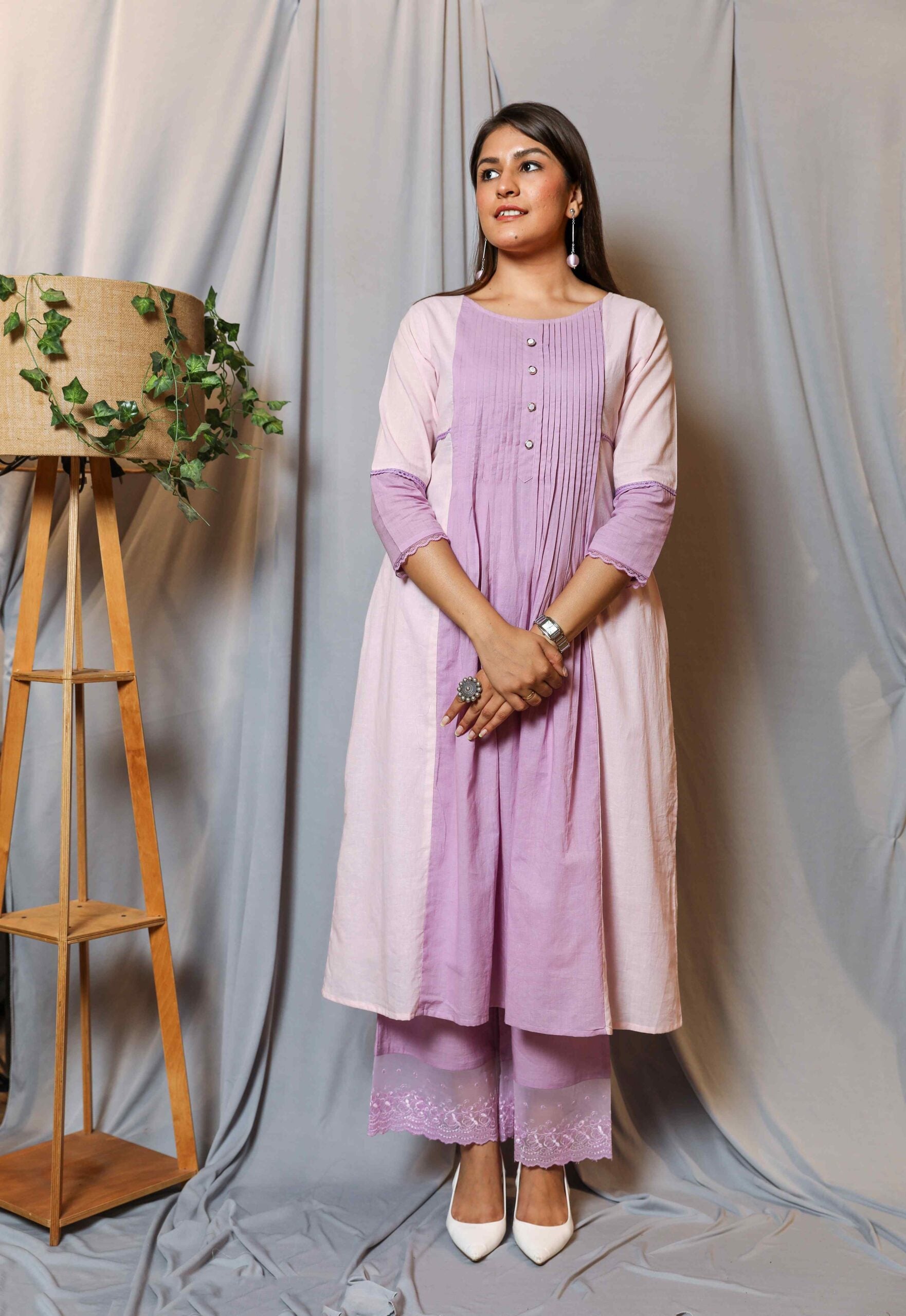 COTTON CAMBRIC TUNIC AND PANT SET WITH LACE DETAILS