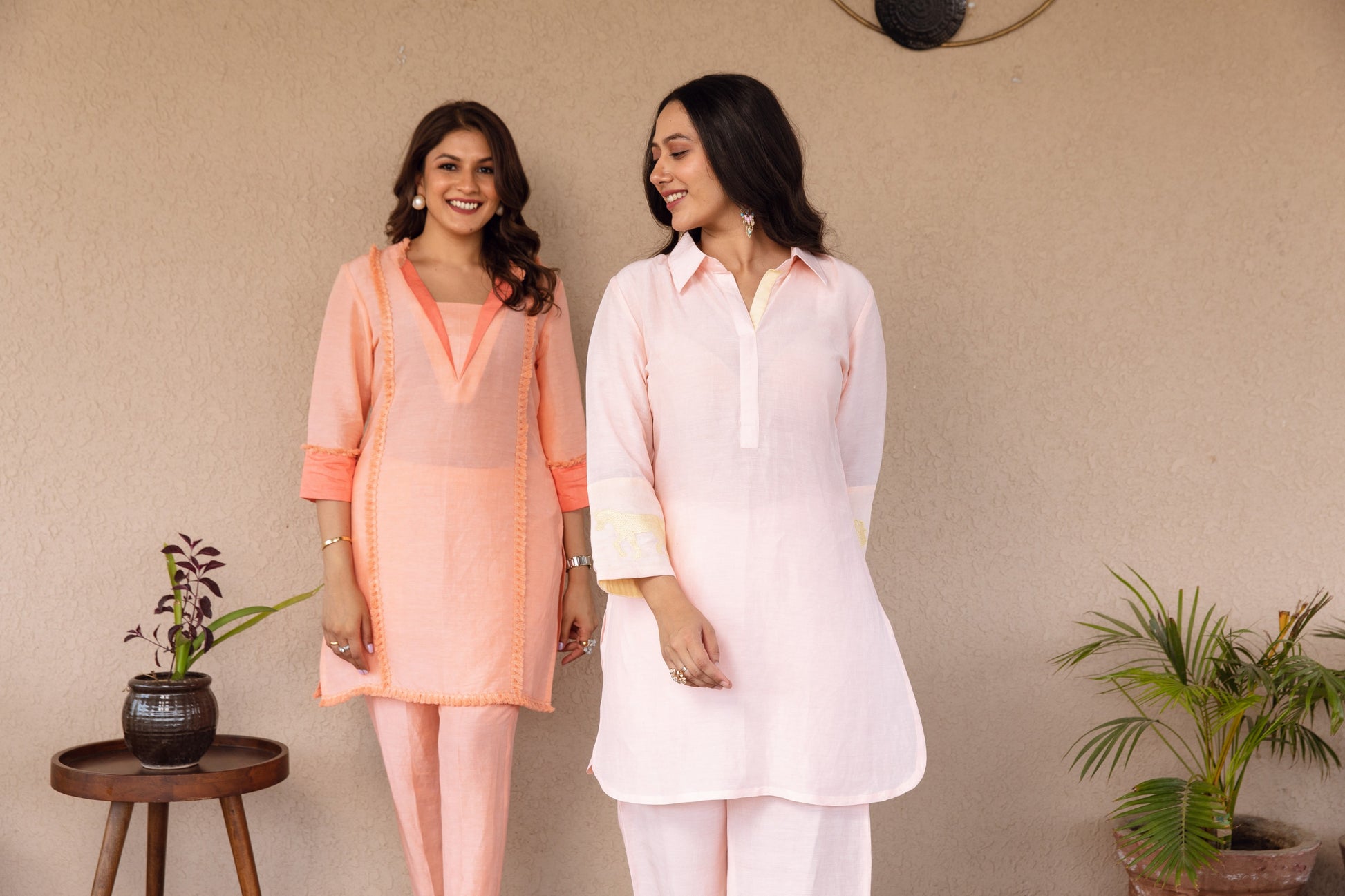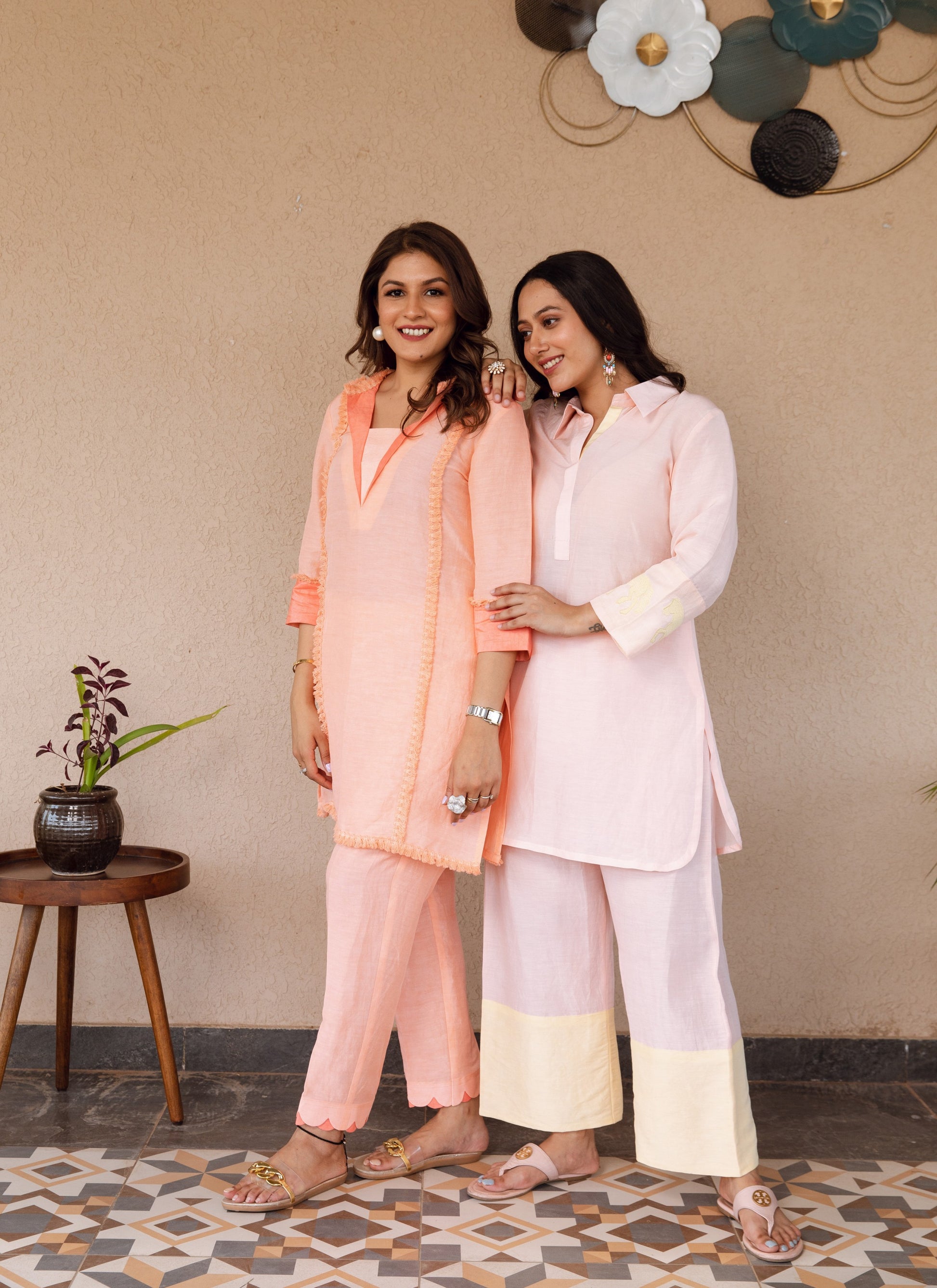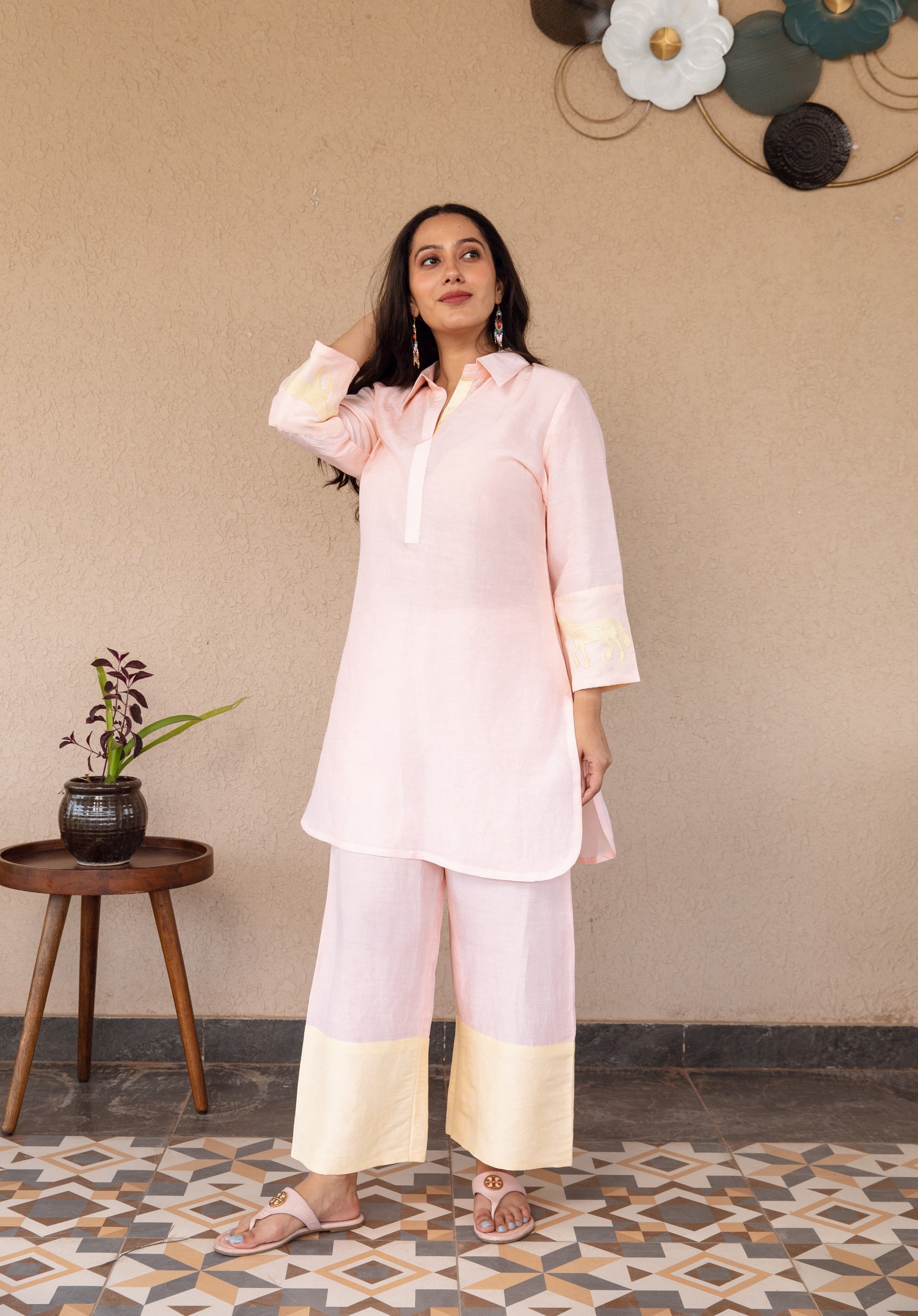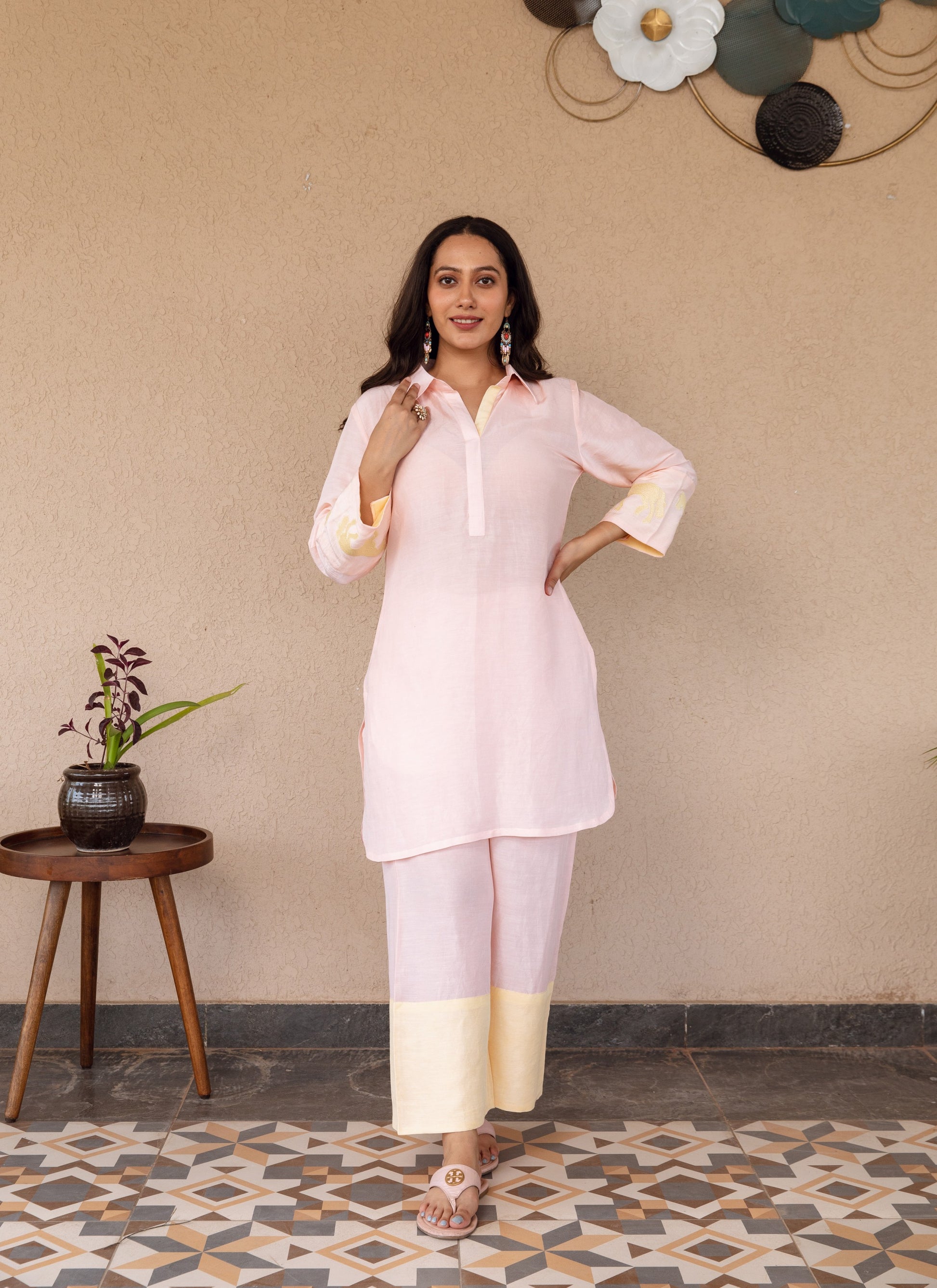 LINEN CO-ORD SET WITH CONTRAST COLOUR